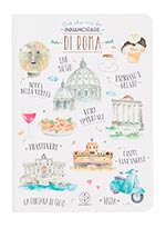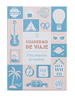 Cuaderno de viake en tapa dura, con bolsillos internos, que incluye un organizador de viaje. Medidas: 14,8 x 21 cm. 32 páginas.