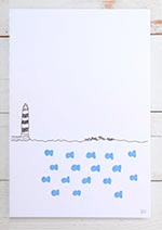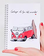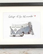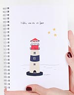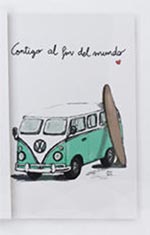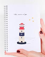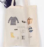 Con los dibujos de las ilustraciones de vacaciones en el norte y vacaciones en el mediterráneo. El capazo, la cámara de fotos, la camiseta de rayas y las menorquinas. En este caso, en pack de 2 unidades.
