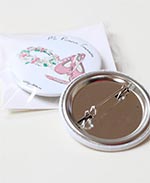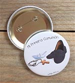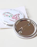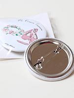 Una chapa con alfiler con el diseño de primera comunión de este año: las bailarinas y la corona de flores en tono rosa palo. Chapa redonda con alfiler de 50mm acabado mate.