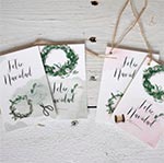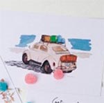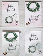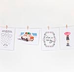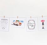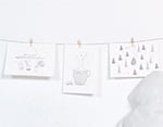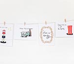 Con los dibujos de las ilustraciones de vacaciones en el norte y vacaciones en el mediterráneo. El capazo, la cámara de fotos, la camiseta de rayas y las menorquinas. En este caso, en pack de 4 unidades.
