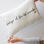 El cojín está hecho de loneta fina de alta calidad y el relleno de fibra hueca siliconada para que sea bien mullidito, como todos los cojines de La Tortuguita Blanca. Hemos confeccionado todos los cojines uno a uno, despacito, con mucho cariño. Loneta de